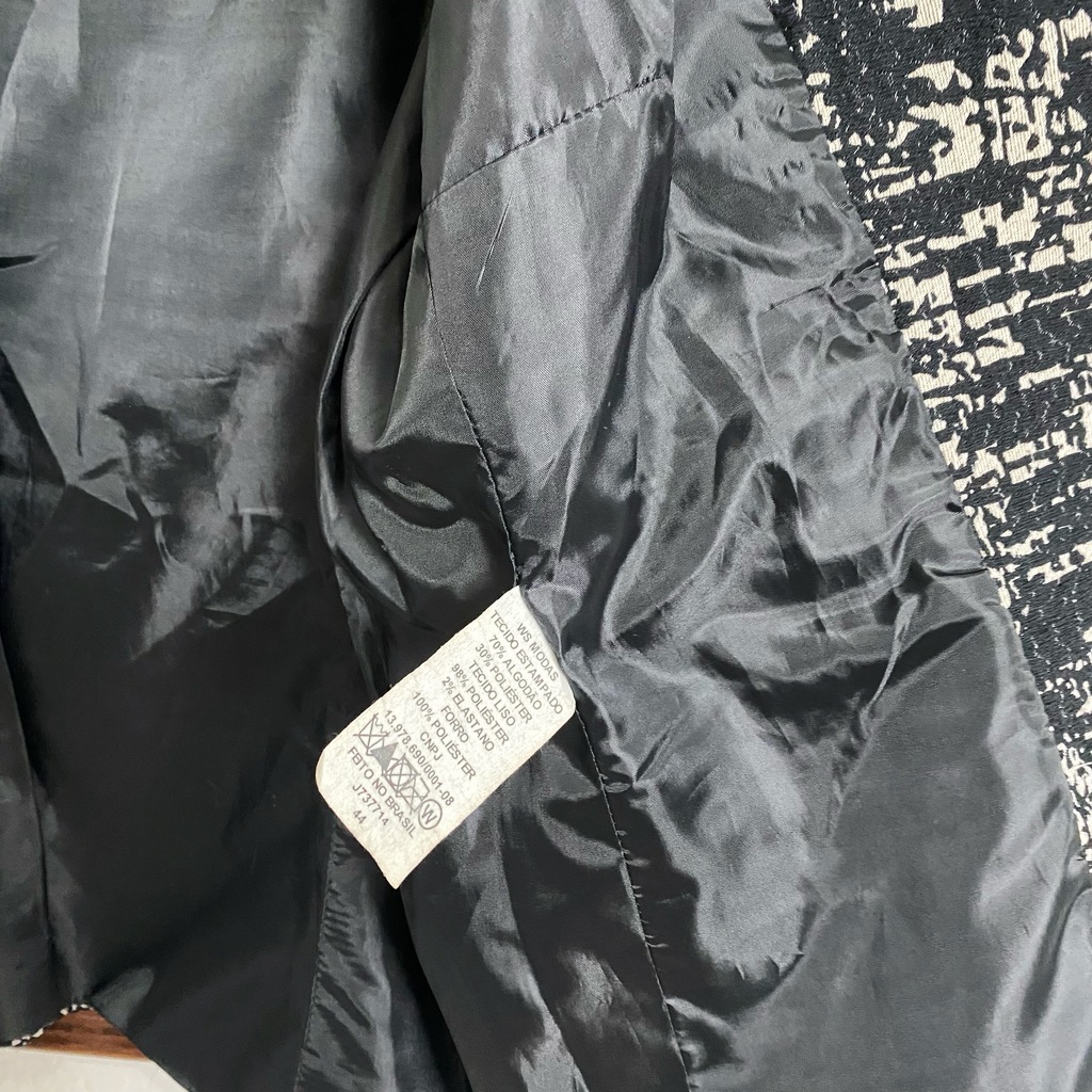 blazer casaco alfaiataria belart, detalhes em matelassê, confeccionado em algodão e poliéster, possui ombreiras, modelagem acinturada, bolsos externo e forro corta vento