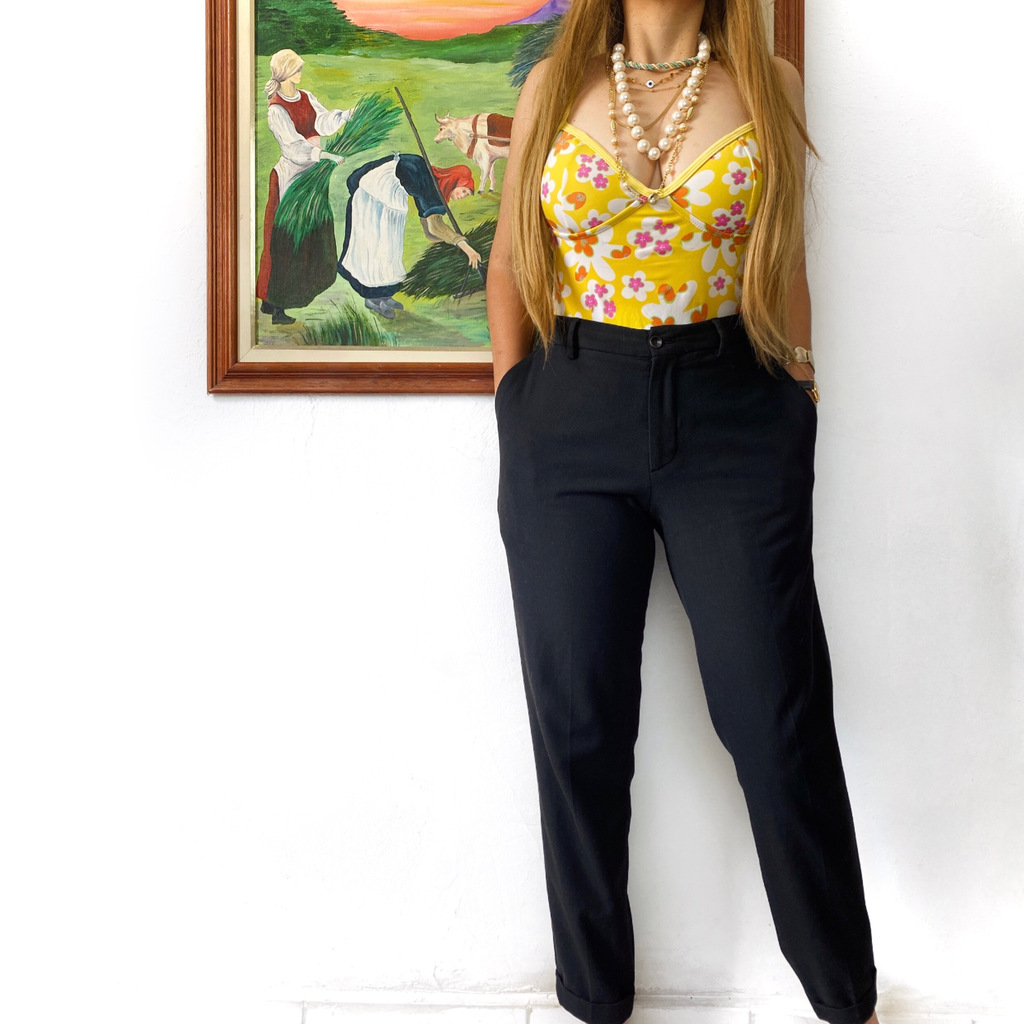calça alfaiataria Zara preta, confeccionada em poliester e elastano, possui cintura alta, cós por passante, bolsos, fecho por zíper, modelagem cenoura