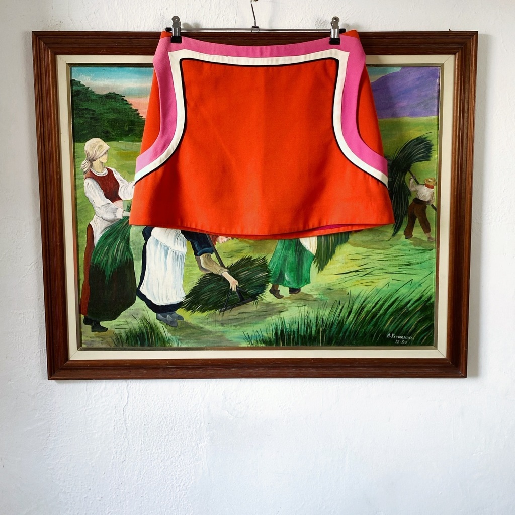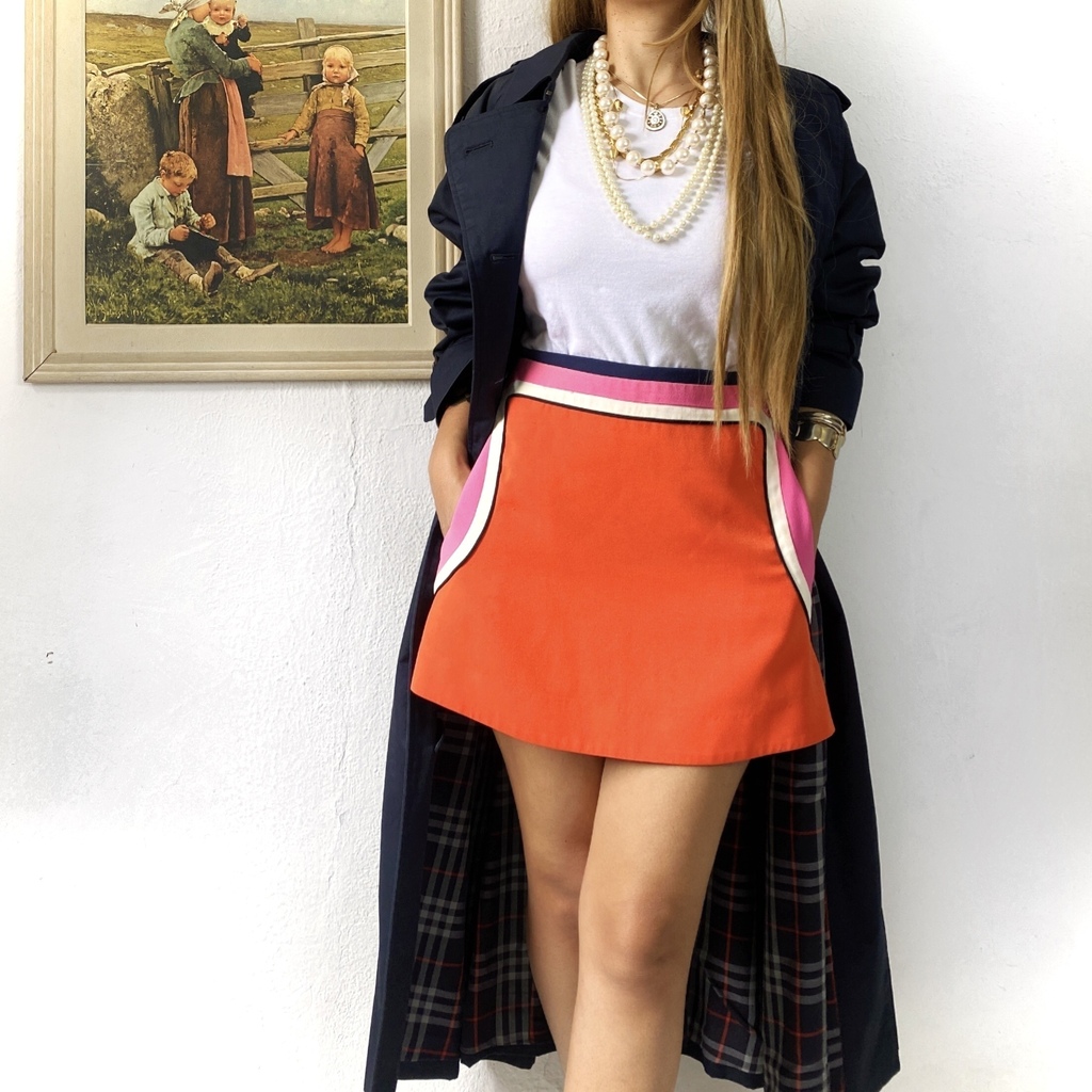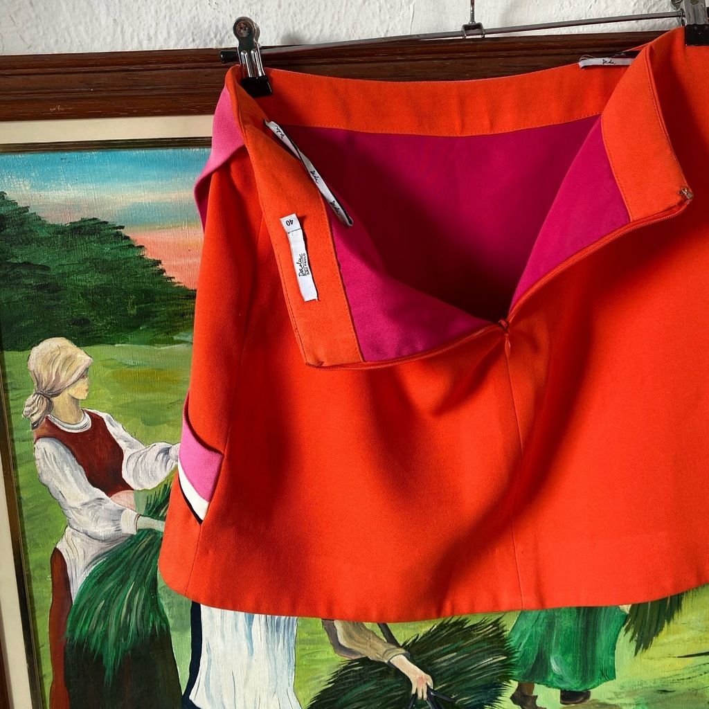 Saia tricolor  Daslu, confeccionado em acetato, possui zíper invisível atrás, forró, bolsos laterais, modelagem evasê